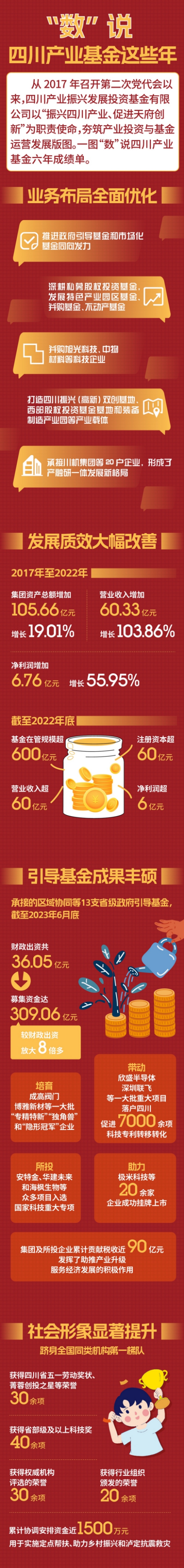 从2017年召开第二次党代会以来,四川产业振兴发展投资基金有限公司以“振兴四川产业、促进天府创新”为职责使命,夯筑产业投资与基金运营发展版图。一图“数”说四川产业基金六年成绩单。