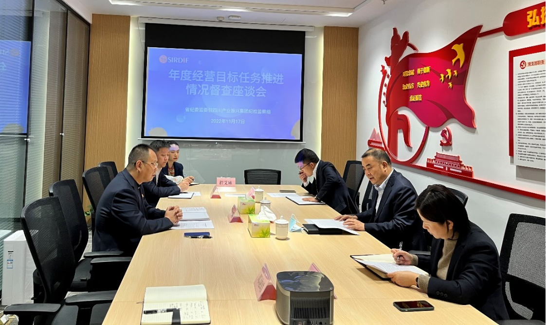 为认真贯彻落实中央和省委决策部署,切实增强“决战四季度、大干一百天”攻坚行动的使命感责任感紧迫感,狠抓党风廉政建设与经营业务深度融合,11月17日,驻司纪检监察组组长、集团党委委员、纪委书记邓平一行赴四川产融开展年度经营目标任务推进情况督查调研。四川产融党支部书记、董事长汪国强,董事、副总经理张航等参加调研座谈。