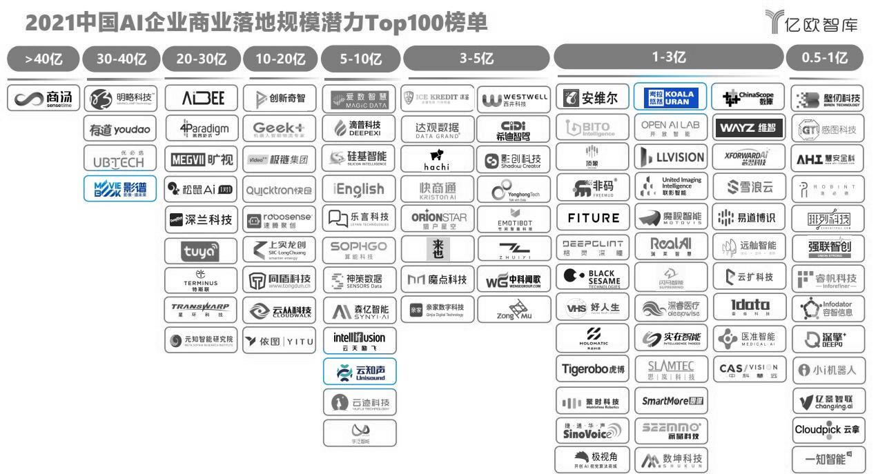 自2017年以来,政府工作报告连续多次提及加快人工智能产业的发展,2021世界人工智能大会(WAIC)作为全球人工智能领域的顶级盛会,汇聚了全球众多AI领域大咖,其联合亿欧智库发布的“2021中国AI商业落地百强企业系列榜单”更是对国内AI企业的商业落地潜力做出了系列评估。