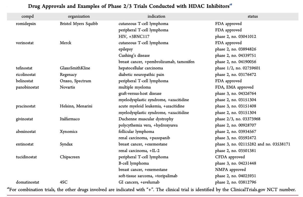 Terence C. S. Ho, Alex H. Y. Chan, and A.Ganesan (2020). Thirty Years of HDAC Inhibitors: 2020 Insight and Hindsight. Journal of Medicinal Chemistr,63(21),12460-12484.