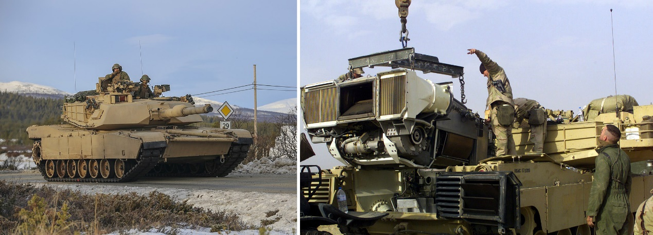 图19:美军M1艾布拉姆斯主战坦克及涡轴发动机吊装照片