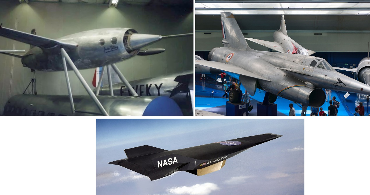 图21:法国Leduc 0.10和Nord 1500载人冲压飞机照片,以及美国X-43无人冲压飞机概念图
