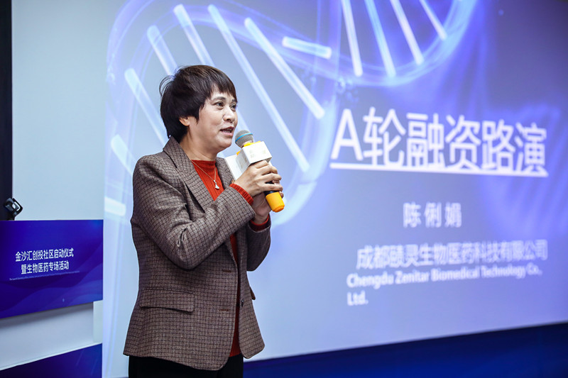 图为陈俐娟教授代表「赜灵生物」参加由川创投主办的“‘金沙汇创投社区’启动仪式暨生物医药专场活动”时的现场照片