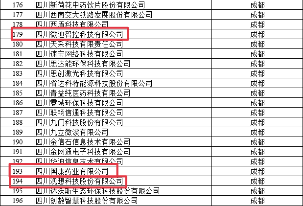 11月25日,四川省经济和信息化厅公示了《2021年四川省“专精特新”中小企业拟认定名单》,凭借其在自身领域内所具备的创新能力、专业实力与发展潜力,「观想科技」「星联芯通」「瑞迪威」「京都龙泰」「国康药业」「微迪智控」等6家「川创投」已投企业入选该名单。