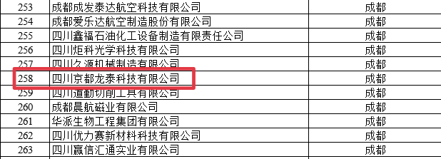 《2021年四川省“专精特新”中小企业拟认定名单》截选