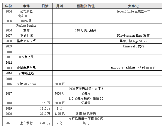 Roblox是一家成立于2004年的儿童线上游戏公司,于2021年3月在美上市,被誉为元宇宙第一股,其招股书中多次提到元宇宙概念,目前市值约为700亿美元。公司的核心产品为Roblox游戏平台,该游戏平台目前在全球拥有2亿的月活跃用户,日活跃用户高达4200万,在美国十周岁左右年龄段儿童中的覆盖率超过了50%。