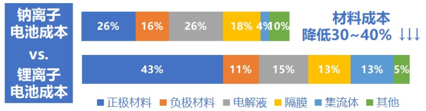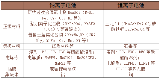 相比锂离子电池,钠离子电池材料使用有差异。钠元素虽与锂元素属同族元素,但钠离子相比锂离子大且重,导致其迁移动力学缓慢,且储钠过程容易造成电极材料产生较大的体积变化,甚至诱导不可逆结构相变,影响电池的循环稳定性。再者,钠的电位相比锂更高,会降低电池的工作电压和能量密度。以上因素导致钠离子电池的电极材料、电解质、隔膜、集流体的选择与锂离子电池有所不同。