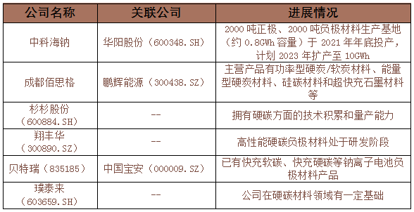 表6:主要钠离子电池负极材料供应商的研发及生产规划