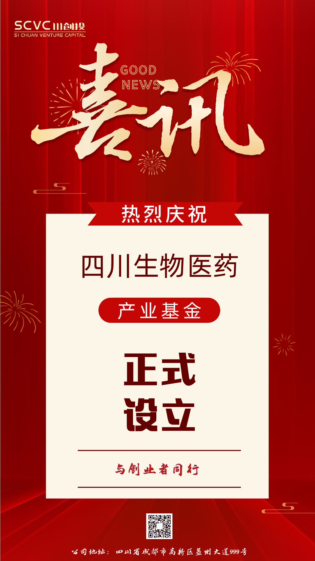 由四川产业振兴发展投资基金有限公司联合四川区域协同发展投资引导基金合伙企业(有限合伙)、成都交子远洋医药健康股权投资中心(有限合伙)、成都交子产业基金管理有限公司共同发起设立的总规模20亿元的「四川生物医药产业基金」于12月29日正式完成注册。「川创投」作为基金管理人与执行事务合伙人全面负责基金的运营管理工作。