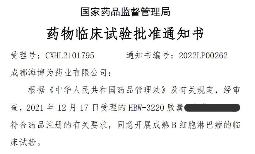 近日,「海博为药业」对外发布喜讯,称其自主研发的1类创新药HBW-3220胶囊已获国家药品监督管理局临床试验默示许可。