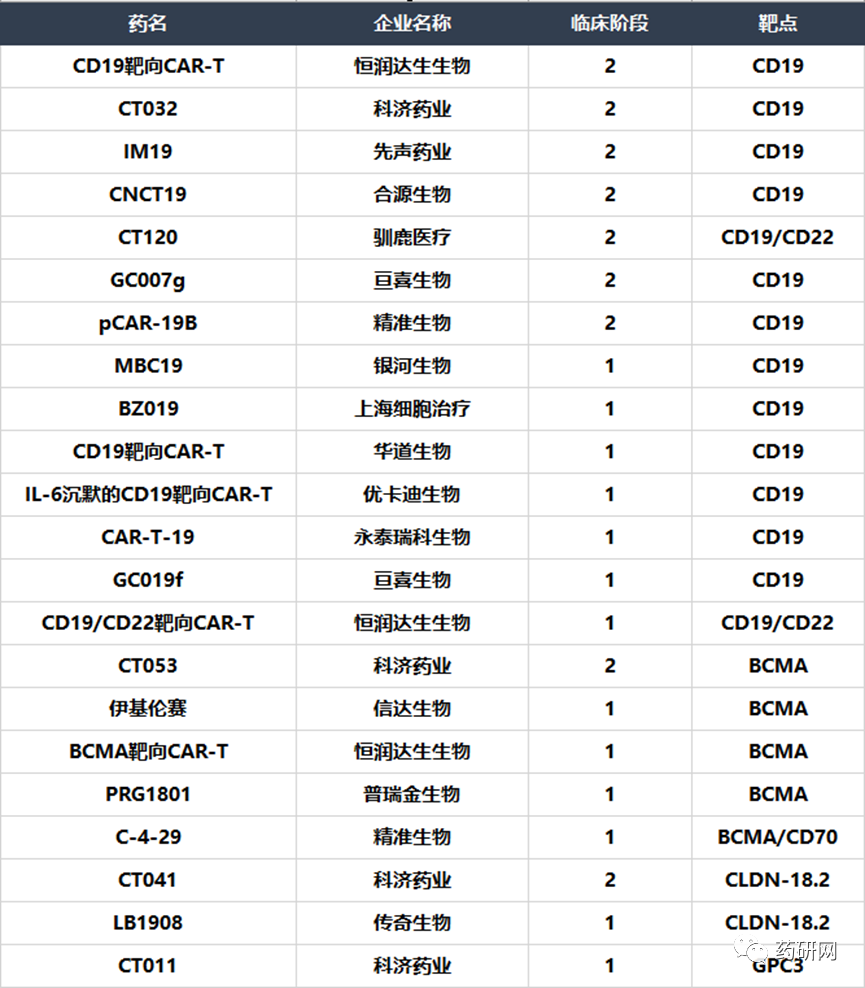 全球范围内的CAR-T疗法行业竞争依然激烈,Clinical Trail上有370余项CAR-T临床试验进入Ⅰ期、Ⅱ期阶段。国内布局CAR-T进入临床阶段的企业超过20家,CD19、BCMA依然是热门靶点,形成差异化竞争的科济药业和传奇生物也有布局针对实体瘤的CLDN-18.2等靶点。