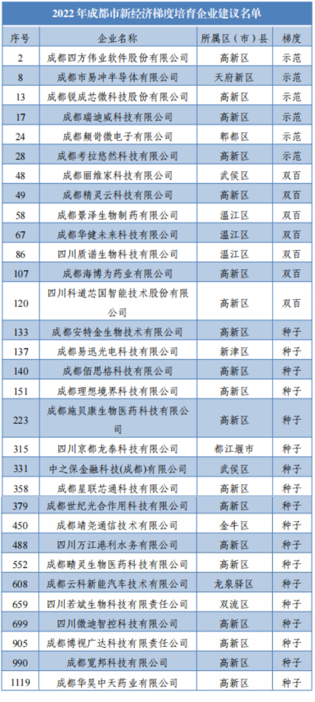 据悉,《2022年成都市新经济梯度培育企业名单》是成都市新经济委根据《成都市新经济企业梯度培育若干政策措施》,按照“政策找企业”的导向,根据“技术认可、市场认可、资本认可、绿色发展”的思路,通过建立新经济梯度培育企业评价指标模型和部门可信数据抓取,经企业自愿申报和主动通知、区(市)县初审、专家评审、市级部门核查后产生。