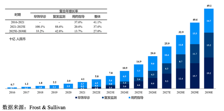 图5 我国肿瘤高通量基因检测市场规模(2016-2030E)