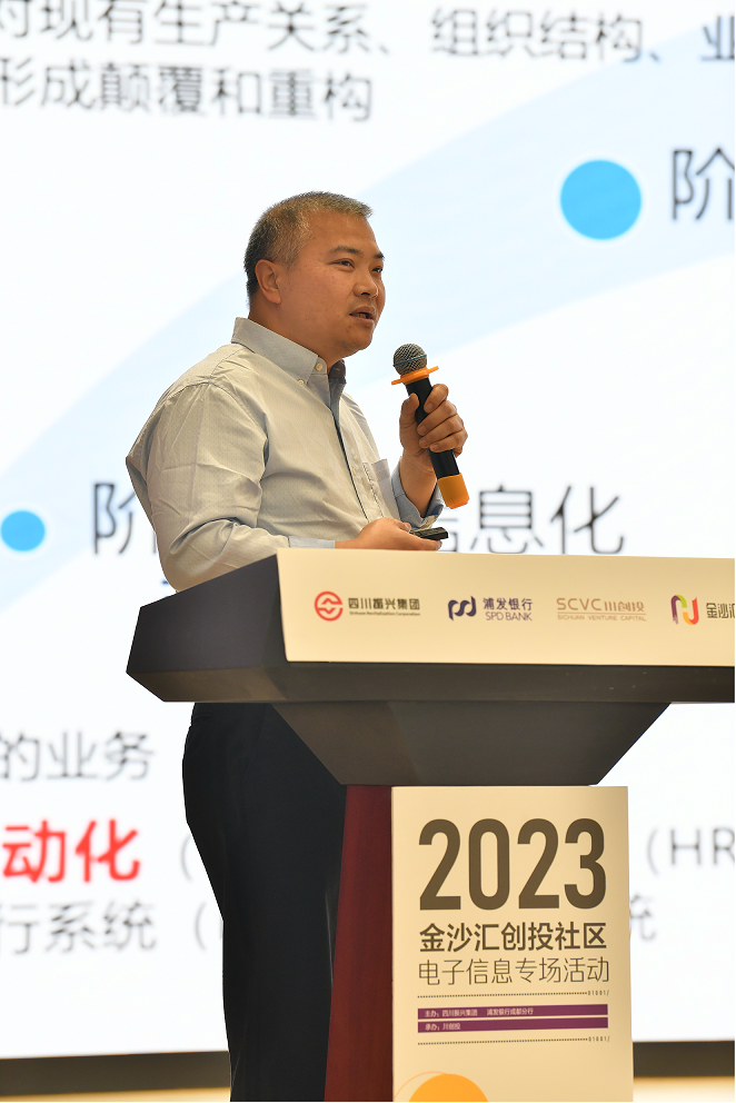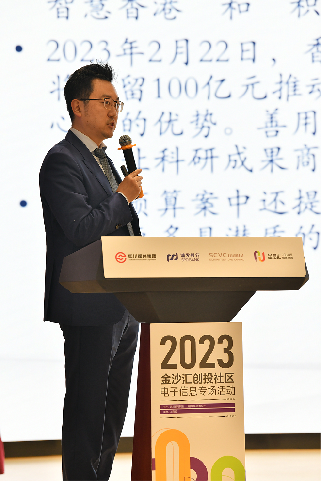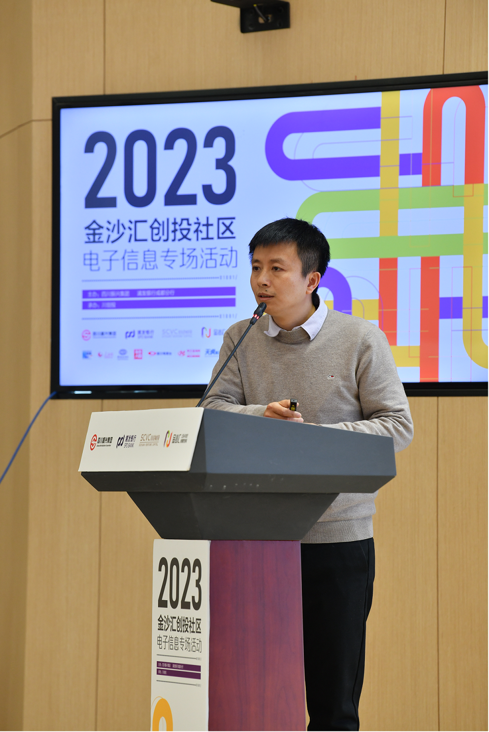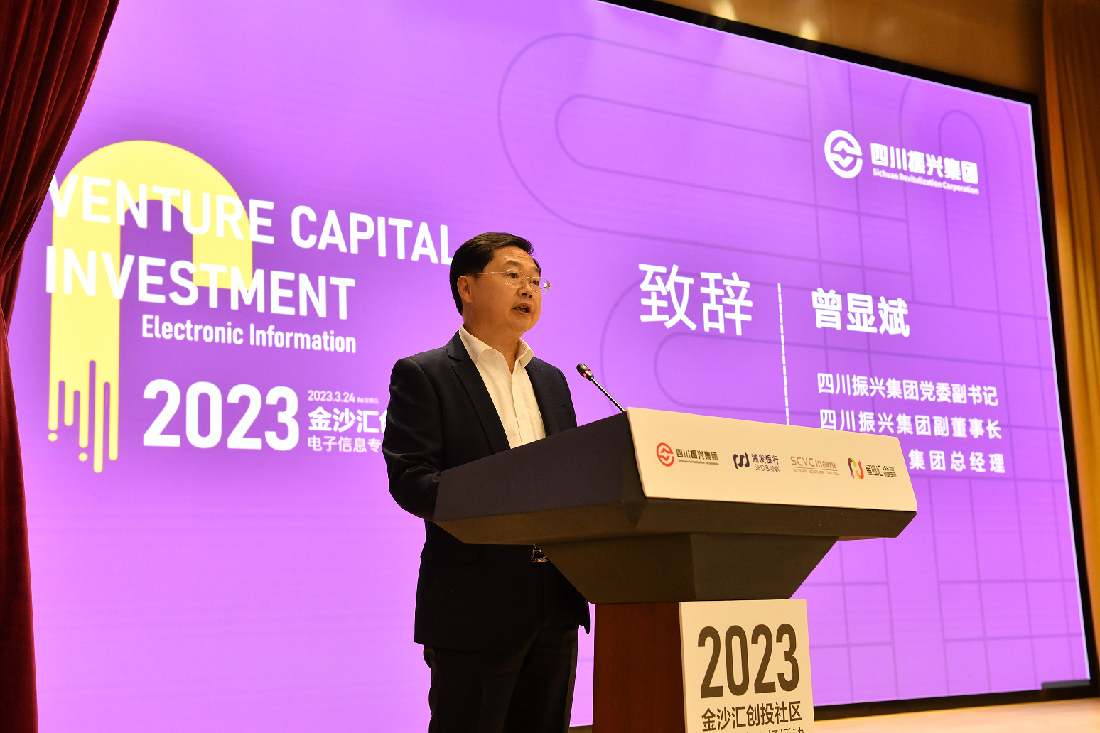 2023年3月24日下午,由四川产业振兴发展投资基金有限公司(简称“四川振兴集团”)与浦发银行成都分行联合主办,四川创新发展投资管理有限公司承办的“2023金沙汇创投社区(电子信息)专场活动”在四川振兴集团双创基地隆重举行。来自科技厅、成都市科技局、科研院所、行业协会、投资机构、领军企业、媒体代表的120余位嘉宾莅临活动现场。四川振兴集团党委副书记、副董事长、总经理曾显斌先生,浦发银行成都分行党委委员赵健先生分别发表致辞。
