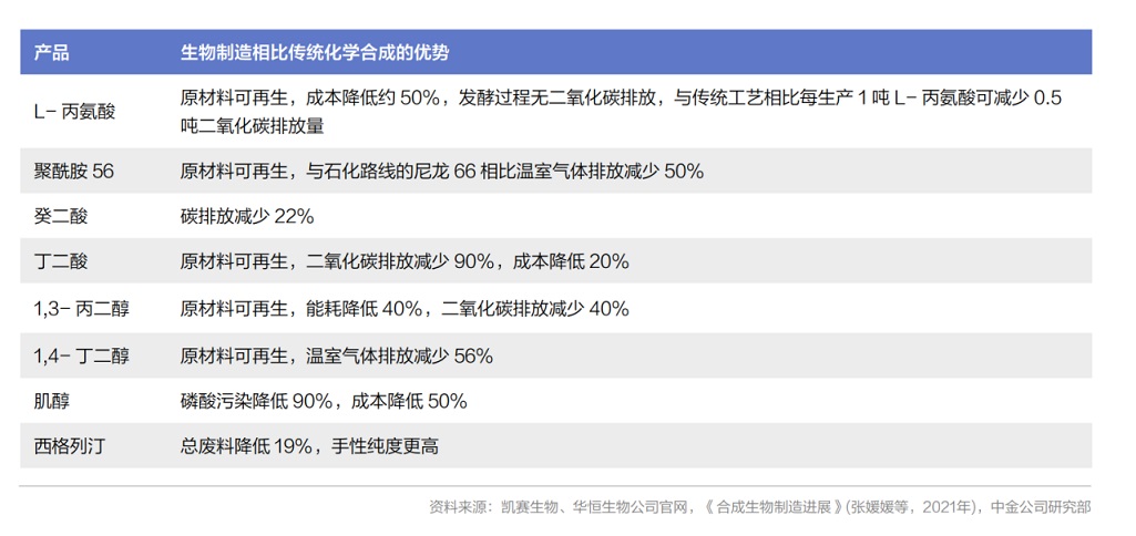 另一方面,以合成生物学为基础的生物制造是实现碳中和的重要途径,总体而言,与化工合成路线相比,目前生物制造产品平均节能减排30%-50%,未来还有50%-70%减排潜力。同时,政策亦逐步施行碳税等碳中和政策,将会进一步拉开生物制造对传统工艺的成本优势,合成生物相关的制造产业也将迎来重要发展机会。