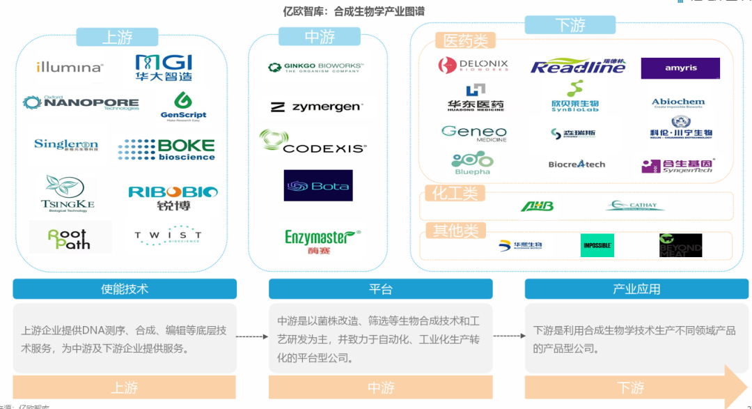 国内合成生物学企业大致可分为两类,一类是专注于下游应用的产品型企业,专注垂直化产品及专项技术突破,覆盖所有关键环节的全产业链,拥有规模化生产的能力和市场化能力;另一类是底层技术驱动、专注于菌株设计和改造等基础研究能力的平台型企业,根据性能特点选择应用场景,交付的产品是菌株,由代工厂完成产品的生产。产品型企业在产品研发过程中往往会同步建立研发平台,让多个产品管线的快速落地,而平台型企业也可以在发展后期逐渐建立下游的研发创新能力,生产出自己的产品。