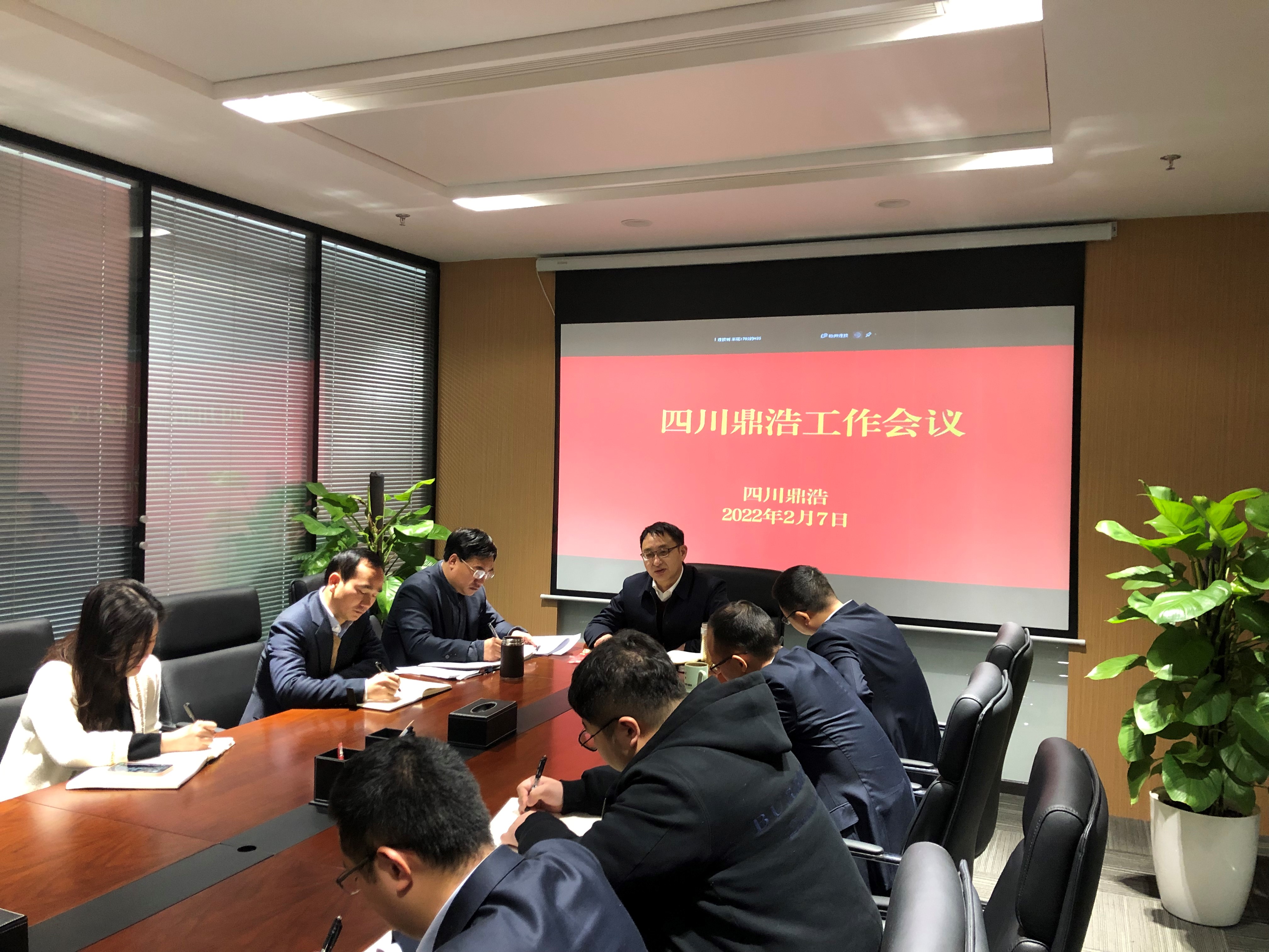 2022年1月26日,集团公司召开2022年度工作会议,全面总结了2021年工作,分析了当前形势,部署了2022年工作任务。节后上班第一天,2022年2月7日,四川鼎浩党支部书记、董事长吴运杰同志组织收心会,召集全体员工认真学习集团公司2022年工作会议精神,会上,重点学习杨自力董事长在年会上的讲话精神,根据杨自力董事长对下属机构的重要指示和要求,结合公司实际情况,认真梳理公司2022 年工作要点。会议要求,要继续深入学习领会会议精神实质,统一思想、明确目标,认清形势,增强信心,细化职责和措施,千方百计确保公司重点工作的有序推进和年度目标任务的圆满完成。