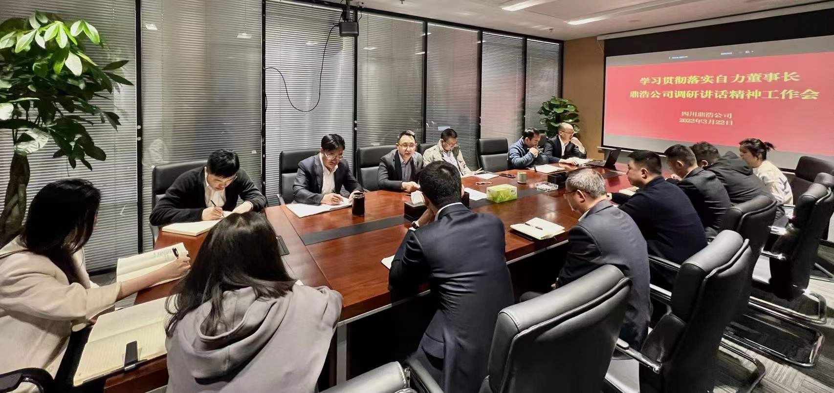 2022年3月17日,集团领导调研四川鼎浩座谈会在1817会议室召开,集团党委书记、董事长杨自力同志主持了会议。集团党委副书记、董事刘铁同志,集团总会计师王峥宇同志出席会议,集团有关部门负责人,四川鼎浩班子及全体员工参加了会议。