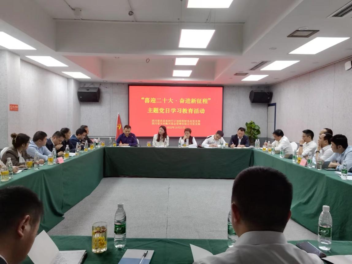 杨红处长介绍了农业农村厅计财处党支部的基本情况,并分享了学习二十大报告的体会。她认为,“二十大报告主题宏大、思想深邃、方向坚定、战略清晰、内容全面、重点突出、举措迭代,是一个指引我们全面建设社会主义现代化国家、全面推进中华民族伟大复兴的纲领性文献。”作为十年伟大变革的亲历者、见证者、参与者,深感荣幸与自豪。通过认真学习党的二十大报告,我读出了习近平总书记对农业、农村、农民的关切关爱、期望期许,体会到“三农”工作空间广阔、大有可为,也深深认识到“三农人”责任重大,使命光荣,我们要积极从报告中汲取智慧和力量,真正做到学懂弄通做实,以务实有效的政策措施推进各项工作,奋力书写新时代乡村全面振兴新答卷。她指出, 当前我省正在由农业大省向农业强省转变,如何加快落实总书记视察四川提出的“打造新时代更高水平天府粮仓”、建设美好四川,回答好现实重大理论课题, 交出一份合格的答卷,确保粮食安全、确保农产品供应,确保人民对多样化的食品需求等等,需要积极发挥好四川省乡村振兴投资引导基金的作用,促进乡村全面振兴。愿同基金管理公司同志一道,为实现省委农业发展战略目标,破解制约四川农业产业发展的短板、痛点和难点,探索好基金投融资模式和运行管理模式,撬动更多的社会资本投入到四川农业,投入到乡村产业,提升农业产业开发质量,为“三农”工作得到大发展发挥积极作用。
