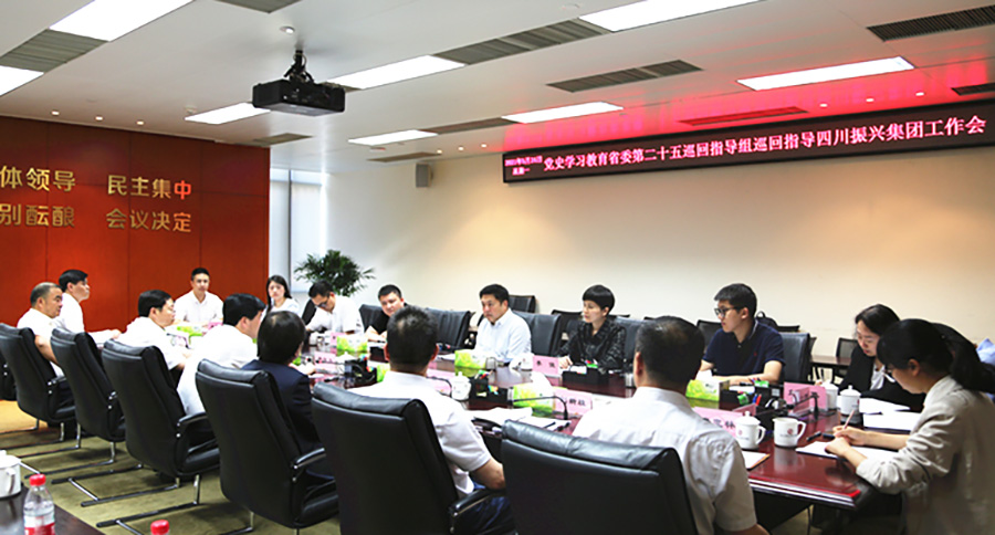 5月24日下午,党史学习教育省委第二十五巡回指导组到四川振兴集团指导党史学习教育工作并召开工作会。省委第二十五巡回指导组组长、省纪委监委驻省国资委纪检监察组组长蔡刚主持会议并讲话,四川振兴集团党史学习教育领导小组组长、党委书记、董事长杨自力汇报集团党史学习教育开展情况,集团领导曾显斌、高书美、邓平参加会议,领导小组办公室负责人及下属公司干部职工代表列席会议。