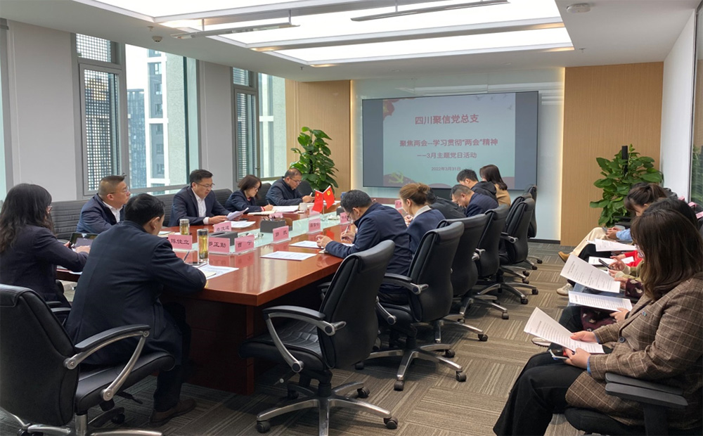聚焦“两会”热点,凝聚奋进力量。3月31日,四川聚信党总支组织开展了“学‘两会’精神,谋发展之路”主题党日活动。会议由公司党总支书记、董事长、总经理吴军主持,公司班子成员、全体党员及部门负责人参加会议。