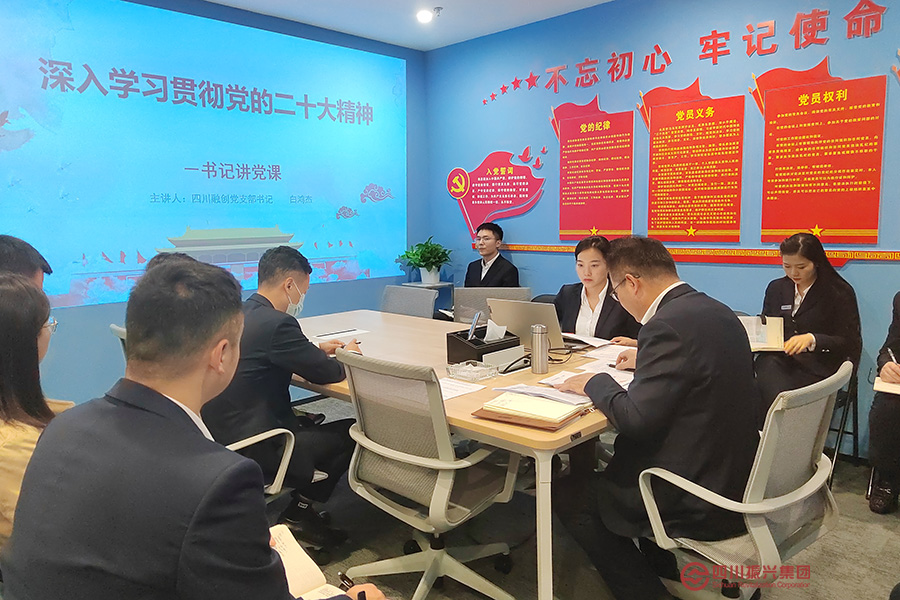 近日,四川融创组织开展“书记讲党课”专题学习贯彻党的二十大精神。公司党员、入党积极分子及全体职工聆听了此次党课,四川融创党支部书记、董事长白鸿杰主讲。