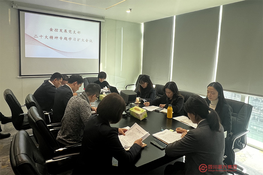 近日,金控发展党支部召开了党的二十大精神专题学习扩大会,公司副总经理董蓓主持会议,公司全体员工参加。