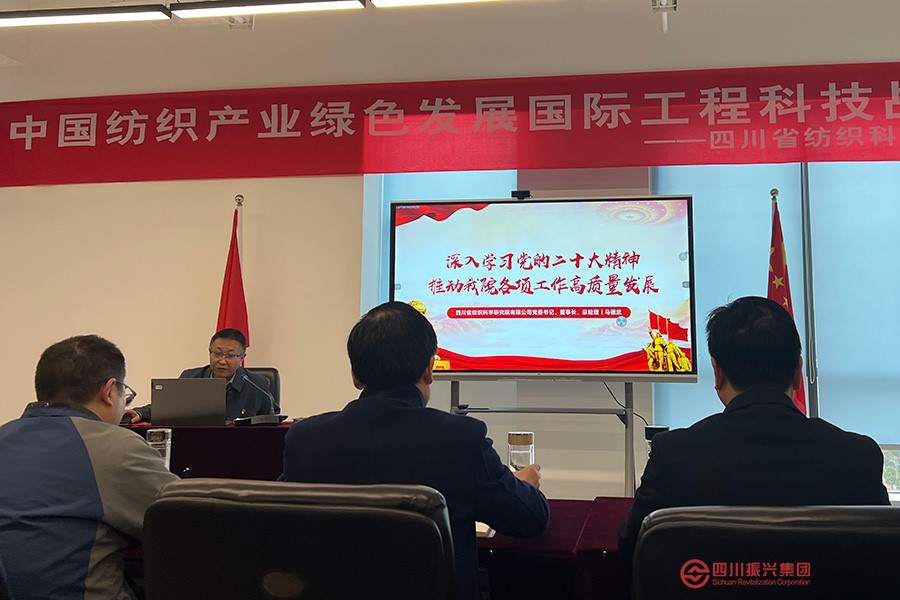 马德武强调,在全院职工的共同努力下,省纺科院坚定践行“诚信、敬业、团结、创新”的核心价值观,坚持可持续发展理念,锐意进取,十年间完成了事业单位分类改革、国有企业公司制改革、办公楼整体搬迁等重大事项,院公司发展扎实稳步推进。马德武要求全院党员和干部职工要深刻理解“中国式现代化”内涵,紧紧围绕省委省政府决策部署和集团公司下达的目标任务,积极探索“小而精且强”的发展思路;要充分运用好网站、公众号等宣传平台和载体,持续宣传党的二十大精神,各党支部要积极采用多种方式,全覆盖开展学习活动,真正做到将党的二十大精神贯彻落实到推动省纺科院改革发展事业的各方面和全过程。