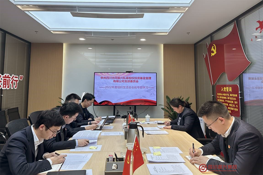 近日,四川协同振兴私募股权投资基金管理有限公司党支部召开2022年度组织生活会会前专题学习,集中学习了党的二十大报告、《中国共产党章程》和习近平总书记在全国两会期间重要讲话精神等内容,党支部书记、总经理郭庆讲授了《学思践悟二十大 协同冲刺“开门红”》专题党课。