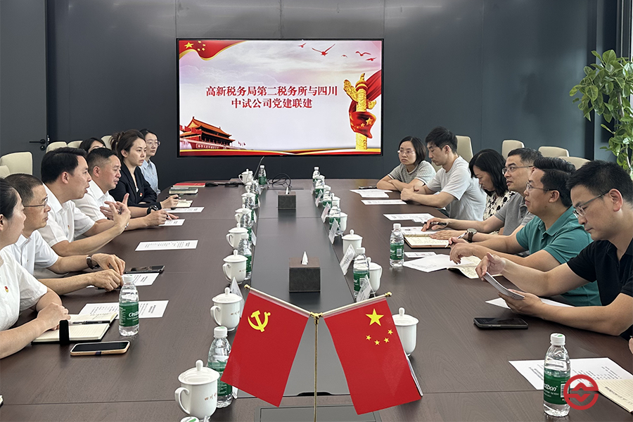 近日,成都高新区税务局党委委员、总会计师王志刚,高新区税务局第二税务所党支部书记、所长毛志宇一行赴四川省中试研发有限公司,与四川中试党支部联合开展主题为“党建引领、税企联动、共促发展”的党建活动。四川中试党支部书记、总经理韩杰思及支部党员参加活动。
