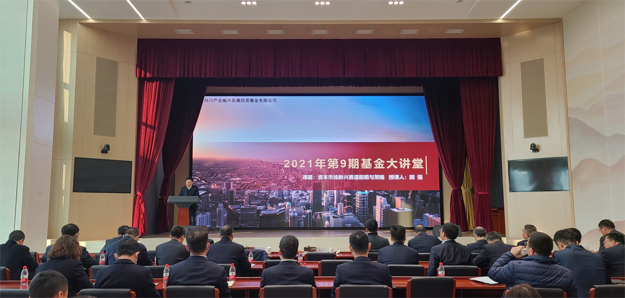 12月29日,四川振兴集团在四川振兴(高新)双创基地19楼会议室举办第9期“基金大讲堂”活动。本期大讲堂由党委副书记、副董事长、总经理曾显斌主持,特邀前工信部规划司副司长,现北京都市圈研究院院长、博士后工作站负责人顾强博士做《资本市场新兴赛道前瞻与策略》专题讲座。
