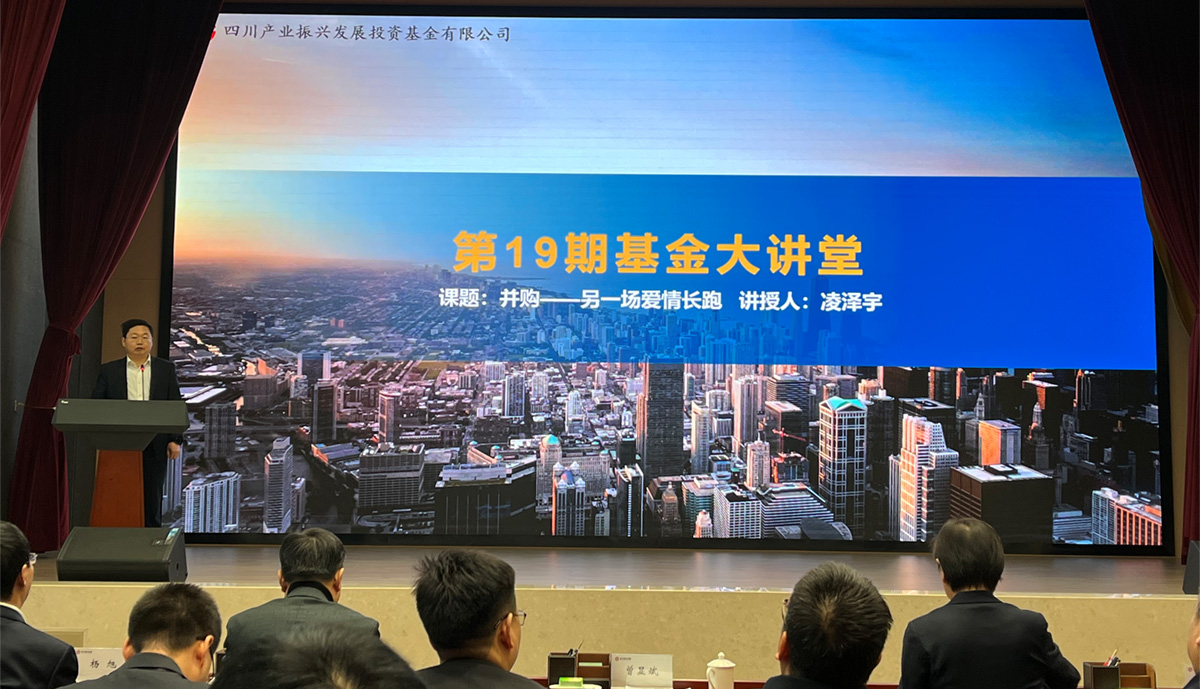 1月18日,新年第一期(总第19期)“基金大讲堂”活动在四川振兴(高新)双创基地19楼会议室举办。本期大讲堂由党委副书记、副董事长、总经理曾显斌主持,丝路重组公司董事长凌泽宇以《并购——另一场爱情长跑》为题,向大家分享了并购重组过程中的典型案例和经验做法。