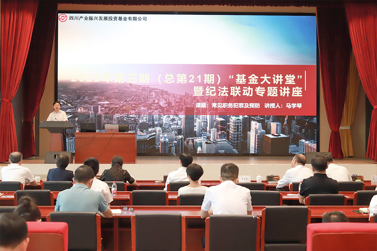 6月17日,四川振兴集团举办2022年第三期(总第21期)“基金大讲堂”暨纪法联动专题讲座。本期大讲堂由党委副书记、副董事长、总经理曾显斌主持,四川省高级人民法院审委会委员、执行局副局长马学琴做“常见职务犯罪及预防”专题讲座。