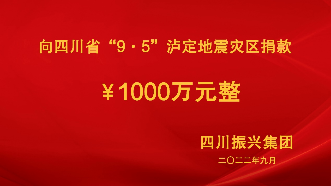 9月5日12时52分,四川省甘孜州泸定县发生6.8级地震,灾情牵动人心。为坚决贯彻习近平总书记重要指示精神,坚决落实省委省政府决策部署,9月9日,四川振兴集团响应省财政厅党组号召,向地震灾区定向捐款1000万元,用于支援灾区抗震救灾工作,帮助受灾群众渡过难关、重建家园。