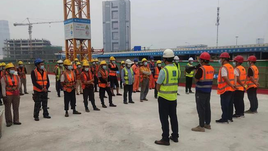 接到解封通知后,四川产城和中建三局项目团队立即安排项目复工。12日一早,项目返岗管理人员16人,监理5人,特岗、后勤人员19人、劳务人员92人。在施工现场,管理人员开展安全教育交底、复工安全生产大检查和复工疫情防控部署会。目前,项目现场已恢复正常生产,建筑工人有序进场施工,争分夺秒抢抓因疫情延误的工期,确保项目年度目标的实现。
