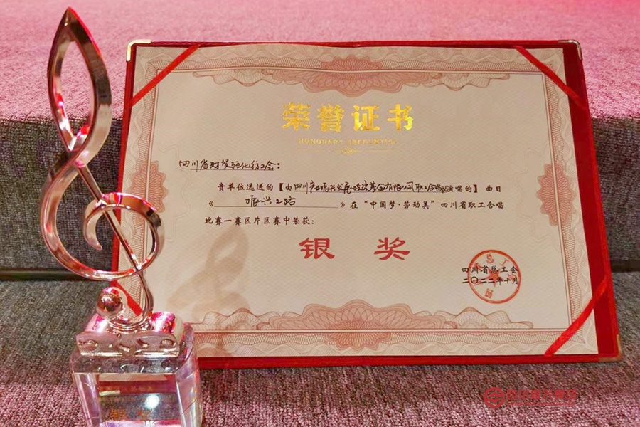 经过与蜀道投资集团、航空工业成飞、西南石油大学、成都公安局金牛分局等七支队伍同台角逐,振兴合唱团凭着优秀的原创作品内容、良好的演唱水平和艺术表现力得到9.72分,以并列第三的成绩荣获了本次比赛银奖!这是振兴合唱团继原创歌曲MV《振兴前行》参加全国选拔获得二等奖后再次获奖,也是首次参加现场比赛获奖。