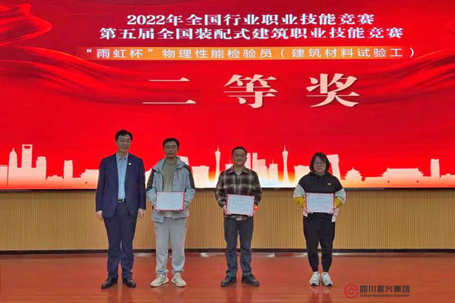近日,第五届全国装配式建筑职业技能竞赛“雨虹杯”物理性能检验员(建筑材料试验工)赛项全国总决赛在安徽芜湖举办。集团下属的四川省建材研究院选派的选手斩获佳绩:熊樟荣获二等奖,周欣玙荣获优胜选手,赵飞荣获优秀指导教练奖项。