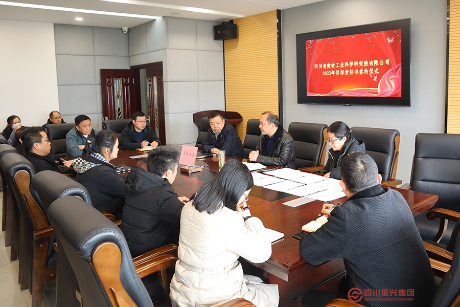 近日,四川省建材工业科学研究院有限公司2023年目标责任签约仪式在公司12楼会议室进行。会议由党委书记、董事长、总经理王强主持,本部各部门、各下属公司负责人参加会议并签订了目标责任书。