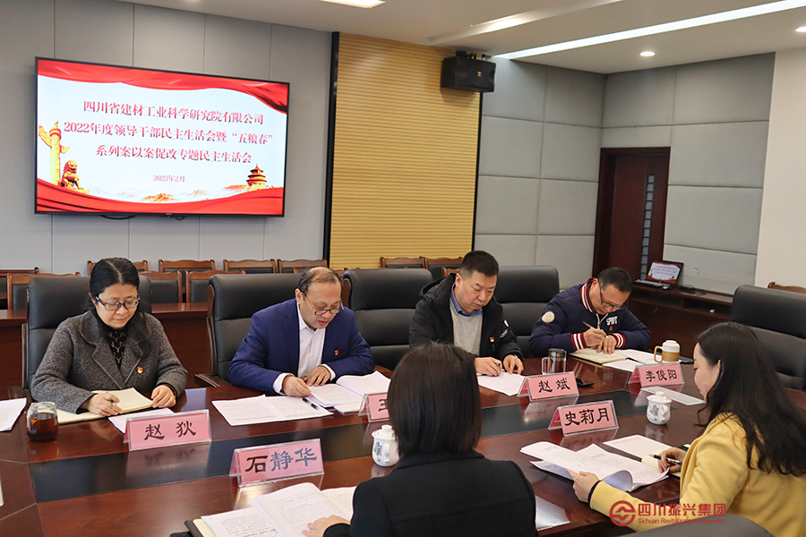2月17日上午,四川省建材工业科学研究院有限公司召开2022年度领导干部民主生活会暨“五粮春”系列案以案促改专题民主生活会。会议由省建材院党委书记、董事长、总经理王强主持,省纪委监委驻集团纪检监察组办公室副主任石静华、集团党委组织部高级经理史莉月到会督导。