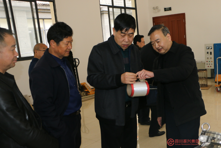 王其明(右二)一行参观省丝绸院先进纤维材料实验室
