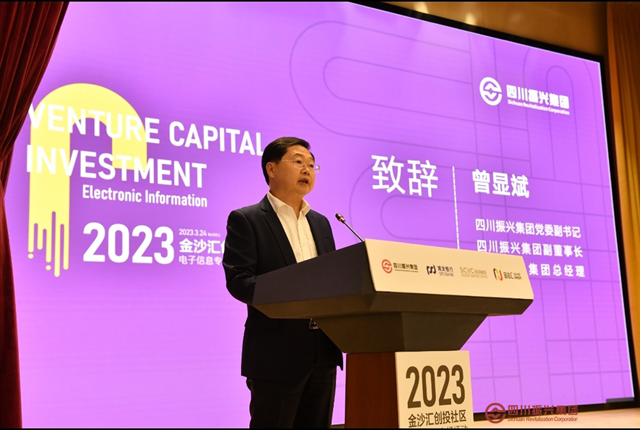 3月24日下午,由四川振兴集团与浦发银行成都分行联合主办,四川创新发展投资管理有限公司承办的“2023金沙汇创投社区(电子信息)专场活动”在四川振兴集团双创基地举行。来自四川省科技厅、成都市科技局以及科研院所、行业协会、投资机构、领军企业等单位的120余位嘉宾莅临活动现场。四川振兴集团党委副书记、副董事长、总经理曾显斌,浦发银行成都分行党委委员赵健分别发表致辞。