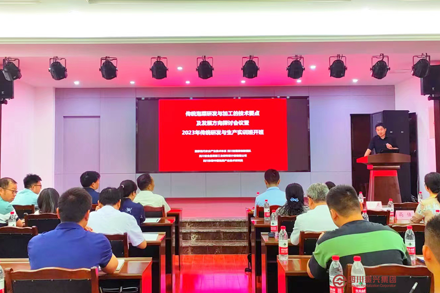 为重实践、建新功,探讨研究泡菜产业发展方向、促进泡菜产业核心技术的成果转化,切实提升泡菜加工企业技术水平,6月10日至14日,四川省食品发酵工业研究设计院有限公司和旗下四川东坡中国泡菜产业技术研究院,在省食研院举办了以实践为重的“2023传统泡菜研发与生产实训班”。来自全国各地泡菜加工企业的代表共30余人参加了实训,农业农村厅相关处室负责人、行业专家受邀参加了开班仪式。此次培训依托国家发酵蔬菜加工技术研发专业中心中试平台开展。