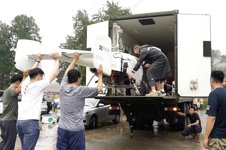 在救援现场,深圳联飞的多旋翼无人机配合救援人员进行灾情侦察,大载重无人直升机配合保障通信中继,为防汛指挥提供技术支持,同时向灾区投送应急物资,帮助受灾群众转移。