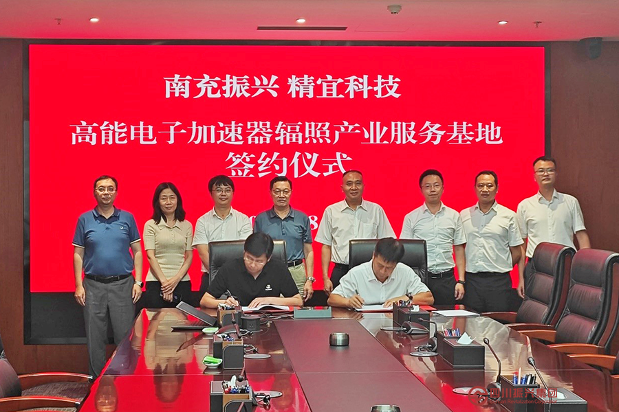 近日,南充振兴产业园实业有限公司与宜宾精宜科技有限责任公司正式签署南充高能电子加速器辐照产业服务基地项目入园投资协议。四川产业基金总经理助理、振兴实业董事长刘怀笔,振兴实业副总经理、南充振兴执行董事邓鞒,宜宾精宜科技首席科学家张庆有,宜宾精宜科技董事长张舒凌及双方相关部门负责人出席签约仪式。