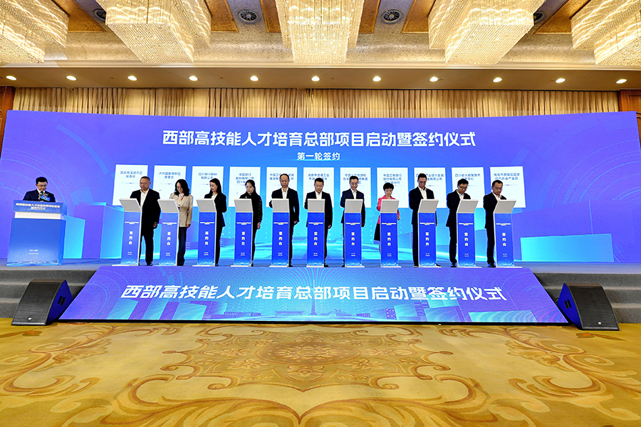 10月12日,西部高技能人才培育总部项目启动暨签约仪式在成都举行。四川省人力资源和社会保障厅党组书记、厅长胡斌,成都市政府副市长王乾出席活动并讲话,人力资源和社会保障部相关单位负责人出席活动。四川产业基金党委委员、副总经理杨旭出席活动,并代表集团公司在集中签约仪式上签属了战略合作协议。