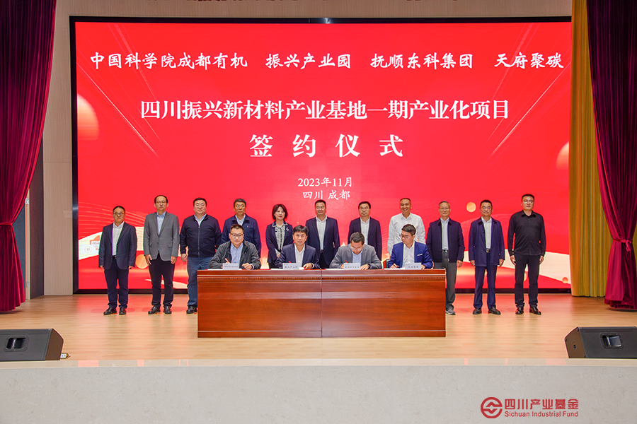 11月10日,四川振兴产业园实业有限公司与中国科学院成都有机化学有限公司、抚顺东科集团、四川天府特种聚碳科技合伙企业在四川振兴(高新)双创基地举行了签约仪式,一期总投资15亿元的四川振兴新材料产业基地产业化项目成功签约落地。四川产业基金党委书记、董事长黎家远,南充市委常委、统战部部长、南充经济开发区党工委书记史燚,中国科学院成都有机化学有限公司党委书记、董事长曾凡琼,东科集团总裁王长生出席签约仪式。四川产业基金总经理助理、振兴实业董事长刘怀笔主持仪式,签约企业相关负责人、四川产业基金相关部门负责人参加活动。