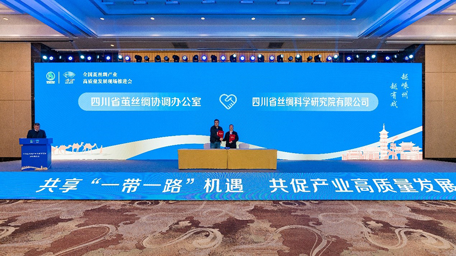 在茧丝绸重大科技攻关项目启动仪式上,四川省丝绸科学研究院有限公司与四川省茧丝绸协调办公室签署了《四川省茧丝绸产业链关键核心技术攻关重大项目启动备忘录》。双方将聚焦茧丝绸产业链关键核心技术,通过政企深度合作、整合资源、协调联动,坚持“创新为先、企业为主、数智为核、项目为基、服务为上、开放为翼”,探索行业发展新质生产力,共同推动四川茧丝绸产业的高质量发展和现代产业体系构建。