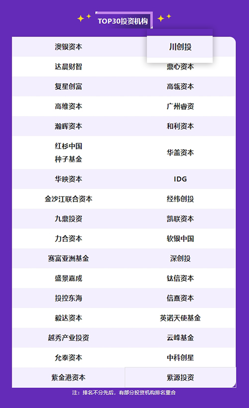 近日,由广州市科学技术局、广州市科学技术协会指导,易启行科技主办的“2023中国(广州)未来资本峰会暨2023超新星榜单颁奖典礼”在广州越秀国际会议中心举行。本次“超新星”榜单共计九大行业、近3000个项目报名参与评选,四川产业基金旗下四川创新发展投资管理有限公司在此次评选中荣登“超新星”榜单TOP30投资机构。