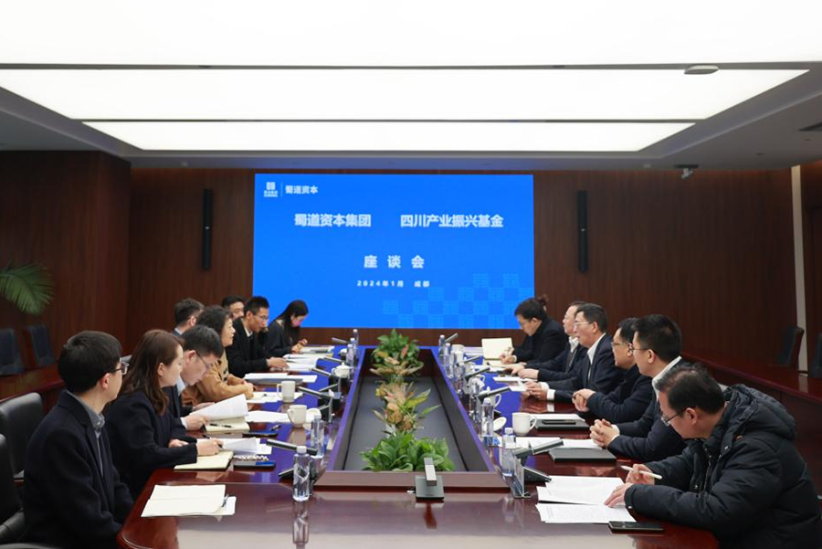 近日,四川产业基金党委委员、副总经理杨旭率队赴蜀道资本控股集团有限公司座谈交流,与蜀道资本集团党委书记、董事长叶红就其定向出资的四川制造业协同发展基金运营情况及下一步合作方式进行了深入探讨。蜀道资本集团党委副书记、副董事长、总经理宋雪飞,党委委员、副总经理杨铁军,四川产业基金旗下四川兴川重点项目股权投资基金管理有限公司董事长郝功贵、四川协同振兴私募股权投资基金管理有限公司董事长郑晏华参加座谈。