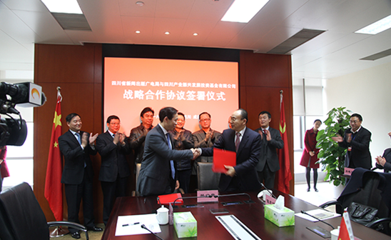 2016年2月2日上午,四川省新闻出版广电局(以下,简称“省广电局”)与四川产业振兴发展投资基金有限公司(以下,简称“产业振兴基金”)在蓉签署战略合作协议,未来双方将建立起长期稳固的全面战略合作关系。签约仪式由四川省委宣传部副部长赵明仁主持,省广电局局长邹吉祥和产业振兴基金董事长赵勇出席仪式并签署合作协议。省广电局副局长黎万恒、周青,四川出版集团董事长罗勇、峨眉电影集团总裁侯志明、四川省有线广播电视网络股份有限公司董事长王春良,产业振兴基金领导班子成员林罡、杨全、高书美、段朋出席并见证签约仪式。